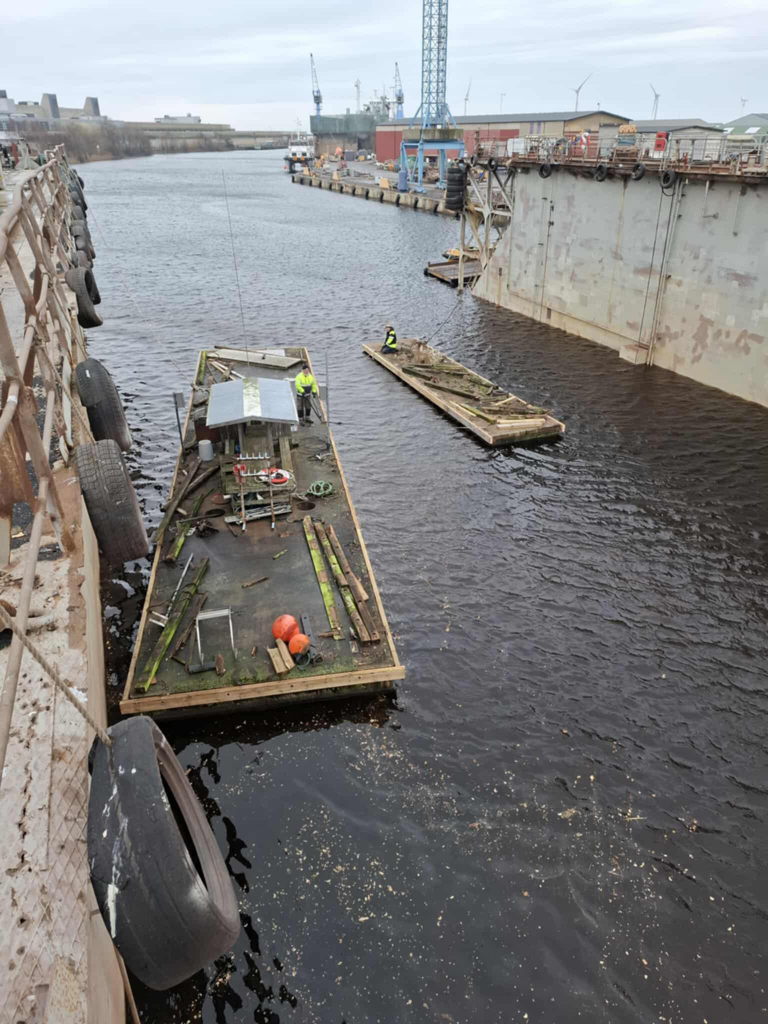 J-bryggan är numera avvecklad och flyttad för renovering, liksom den ponton som under flera år legat i vassen vid D-bryggan. De får nu ett nytt liv och anpassas till klubbens verksamhet vid K-Bryggan. Sven-Olof ansvarar tillsammans med flera medlemmar att anpassa och renovera pontonerna. Falkenbergs varv har ställt upp med att lyfta pontonerna i dockan och underlättar revoveringn avsevärt. Stort tack för denna hjälp.